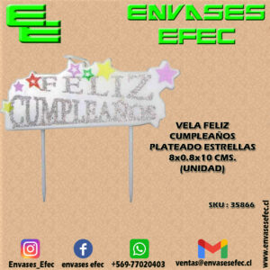 VELA FELIZ CUMPLEAÑOS PLATEADO ESTRELLAS (UNIDAD)