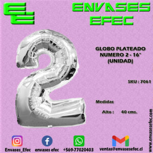 GLOBO PLATEADO NUMERO 2 – 16″ (UNIDAD)