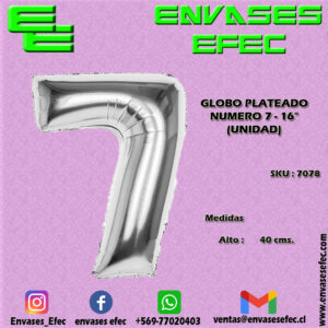 GLOBO PLATEADO NUMERO 7 – 16″ (UNIDAD)