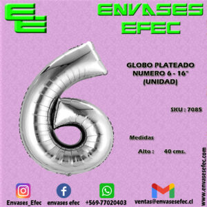 GLOBO PLATEADO NUMERO 6 – 16″ (UNIDAD)
