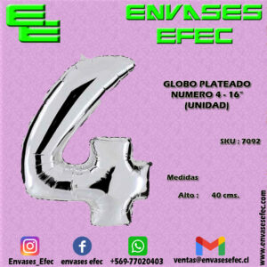 GLOBO PLATEADO NUMERO 4 – 16″ (UNIDAD)