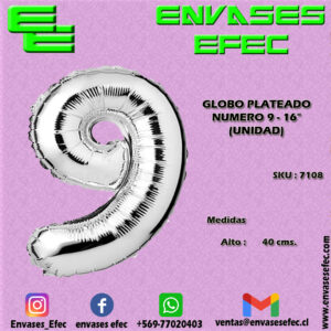 GLOBO PLATEADO NUMERO 9 – 16″ (UNIDAD)
