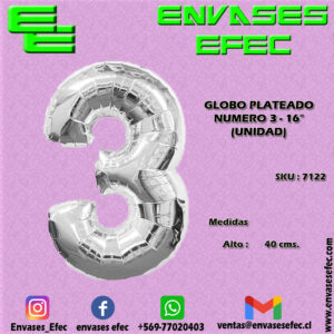 GLOBO PLATEADO NUMERO 3 – 16″ (UNIDAD)
