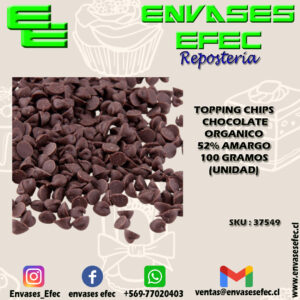 TOPPING CHIPS CHOCOLATE ORGANICO 52% AMARGO -100 GRAMOS (UNIDAD)