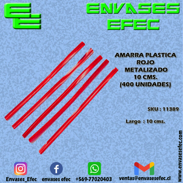 AMARRA PLASTICA ROJO METALIZADO 10 CMS. (400 UNIDADES)