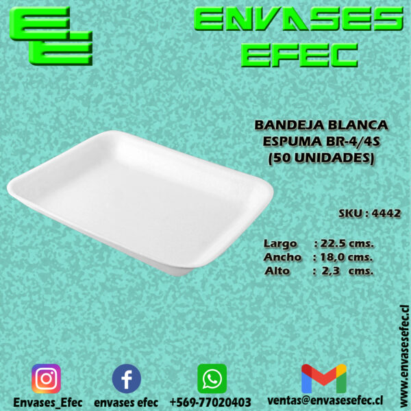 BANDEJA BLANCA ESPUMA BR-4/4S (50 UNIDADES)