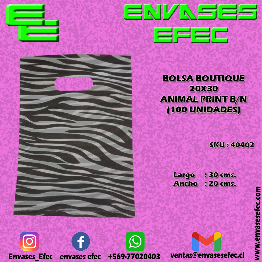 BOLSA BOUTIQUE 20X30 ANIMAL PRINT B/N (100 UNIDADES)