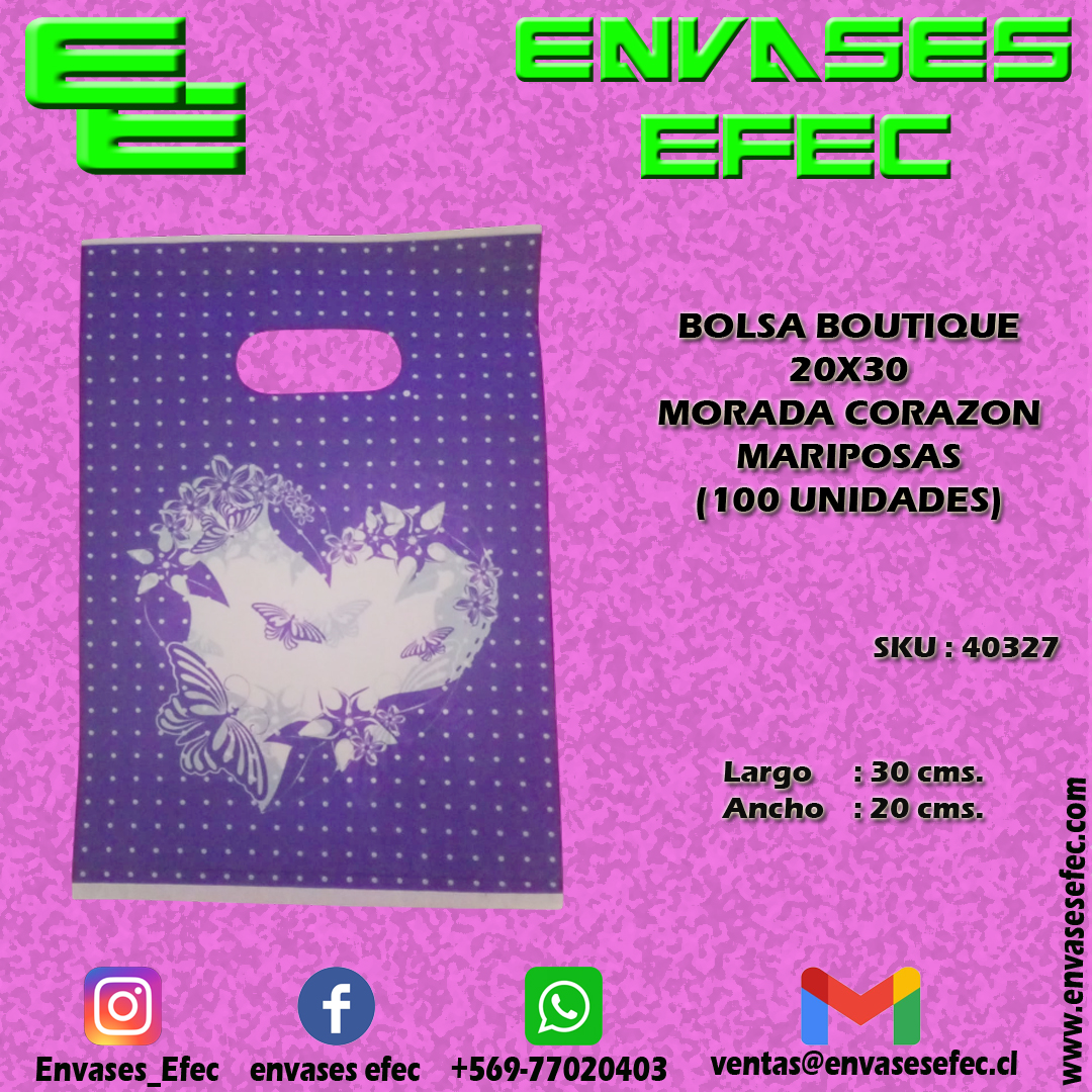 BOLSA BOUTIQUE 20X30 AZUL CORAZON MARIPOSAS (100 UNIDADES)