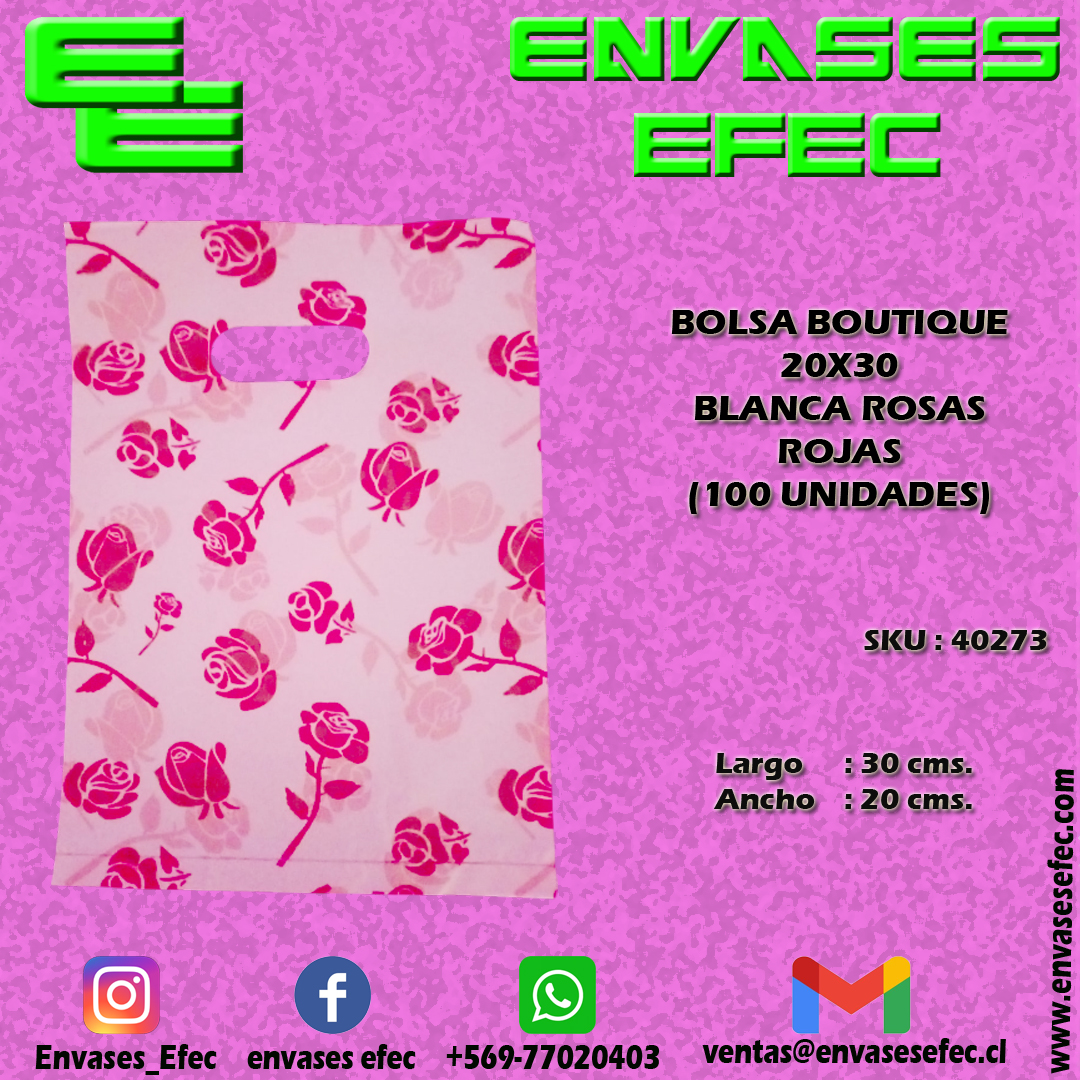 BOLSA BOUTIQUE 20X30 BLANCA ROSAS ROJAS (100 UNIDADES)