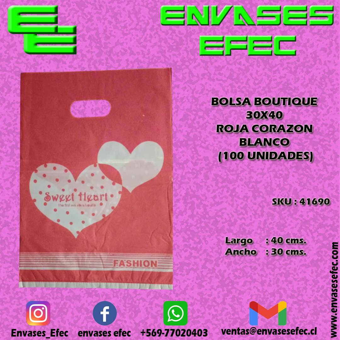 BOLSA BOUTIQUE 30X40 ROJA CORAZON BLANCO (100 UNIDADES)