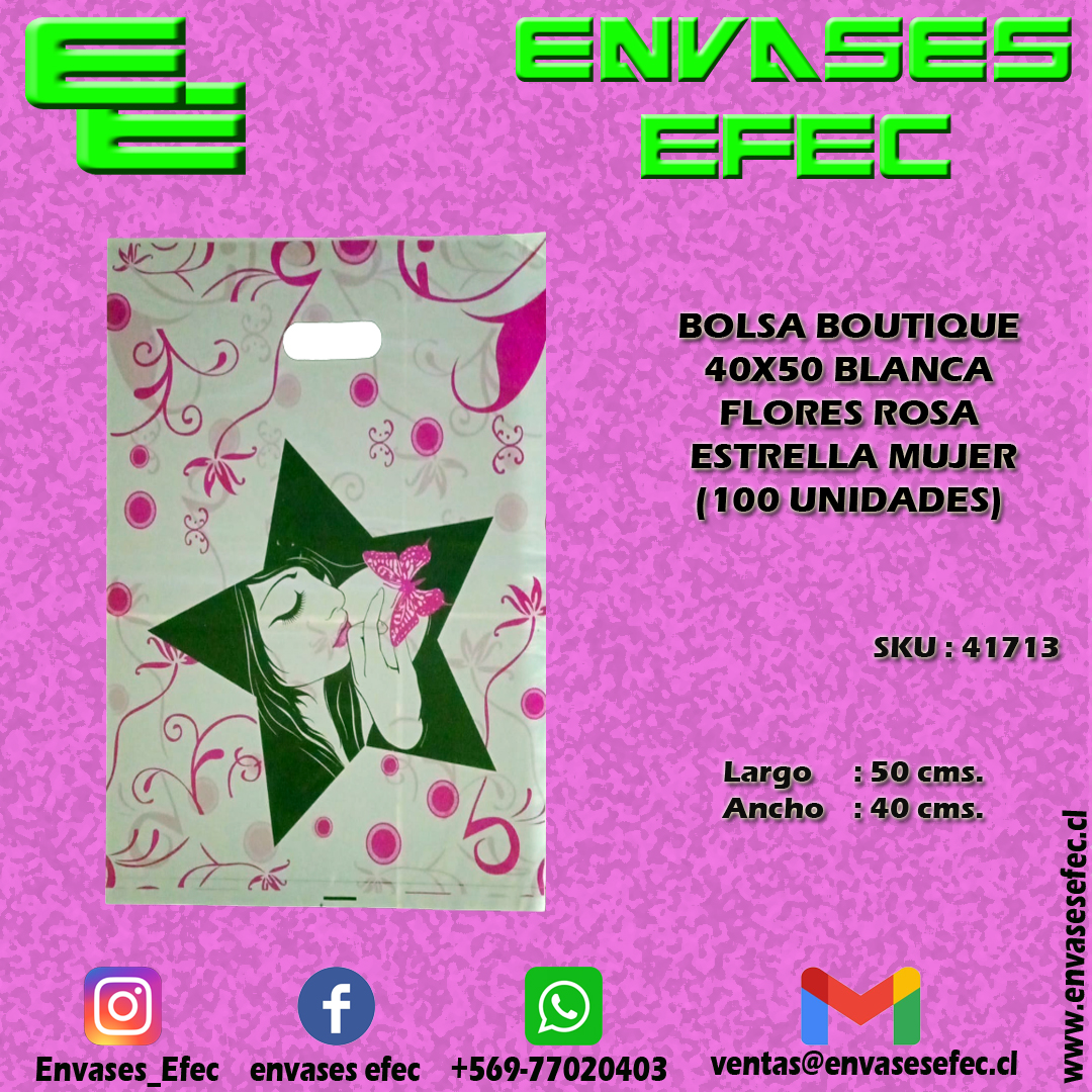 BOLSA BOUTIQUE 40X50 BLANCA FLORES ROSA ESTRELLA MUJER (100 UNIDADES)