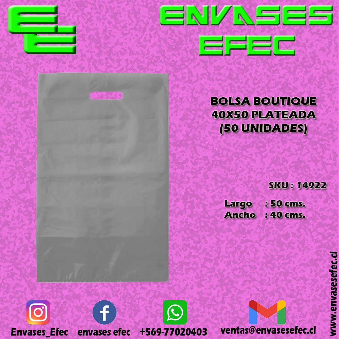 BOLSA BOUTIQUE 40X50 PLATEADA (50 UNIDADES)