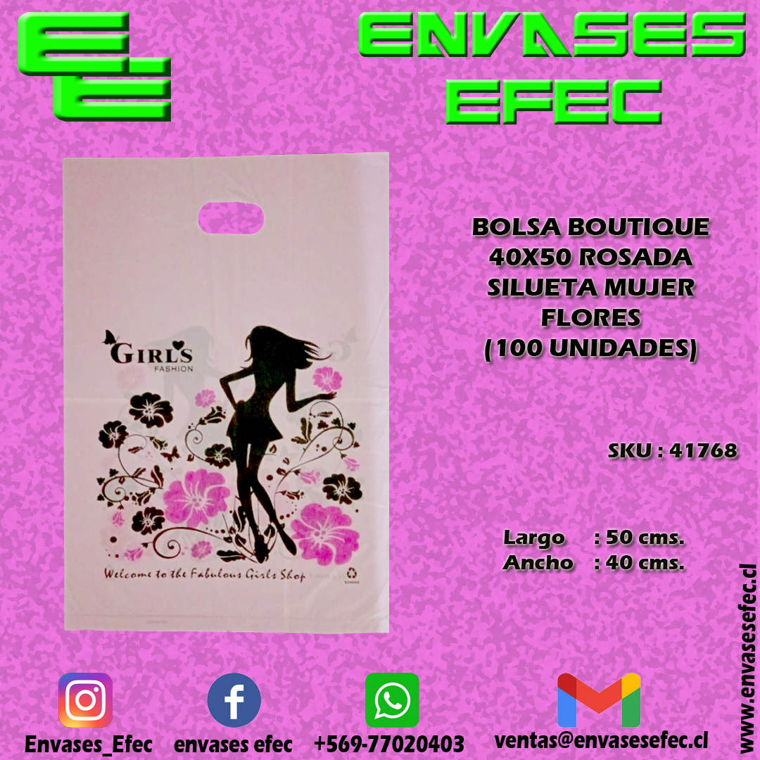 BOLSA BOUTIQUE 40X50 ROSADA SILUETA MUJER FLORES (100 UNIDADES)