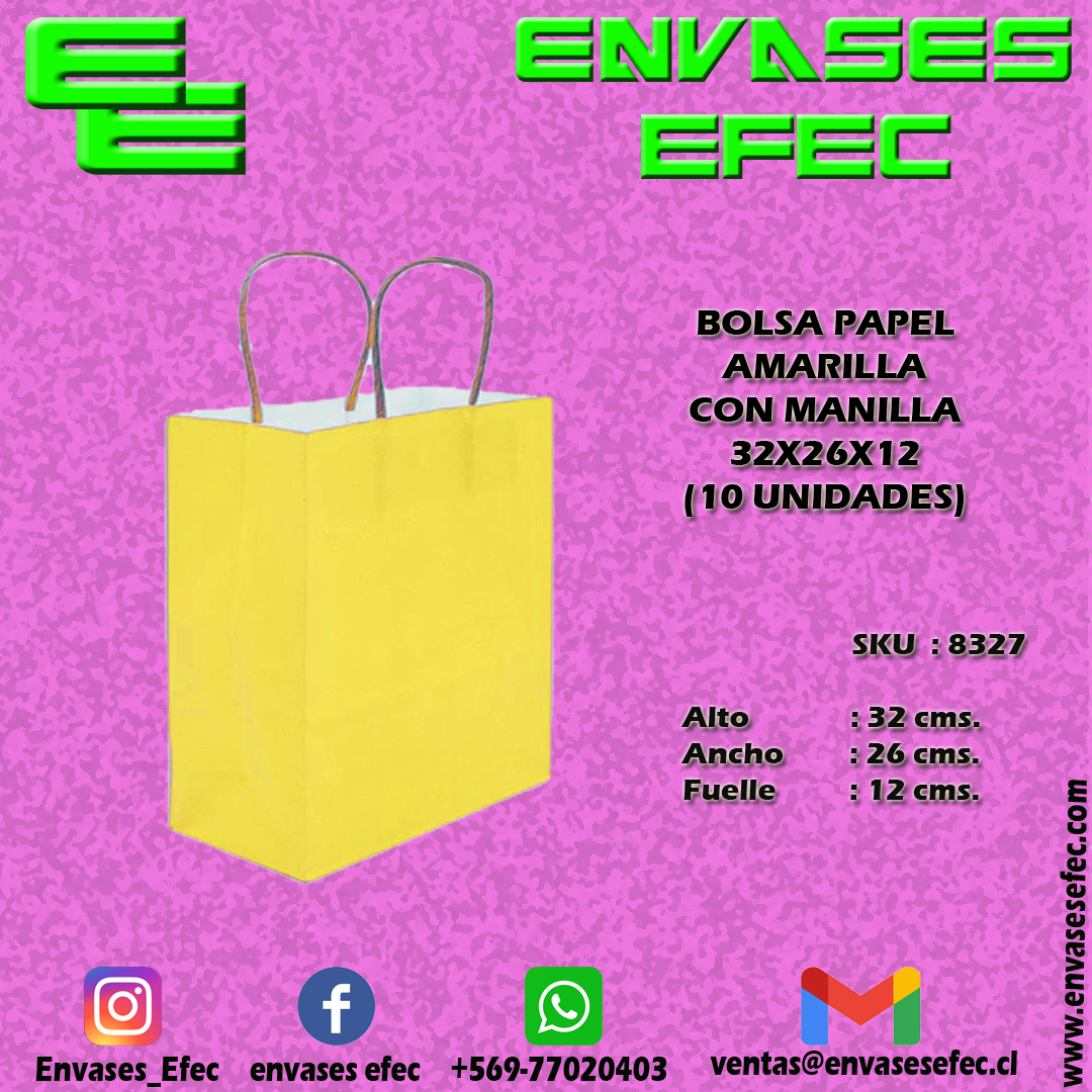BOLSA PAPEL AMARILLA CON MANILLA 32X26X12 (10 UNIDADES)