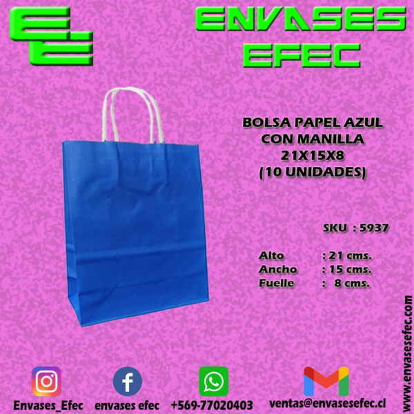 BOLSA PAPEL AZUL CON MANILLA 21X15X8 (10 UNIDADES)