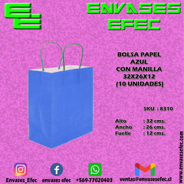 BOLSA PAPEL AZUL CON MANILLA 32X26X12 (10 UNIDADES)