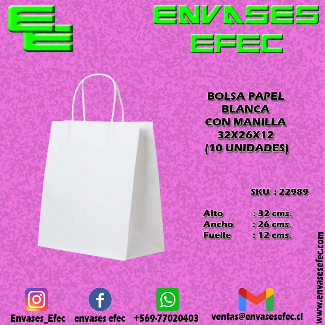 BOLSA PAPEL BLANCA CON MANILLA 32X26X12 (10 UNIDADES)
