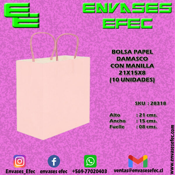 BOLSA PAPEL DAMASCO CON MANILLA 21X15X8 (10 UNIDADES)