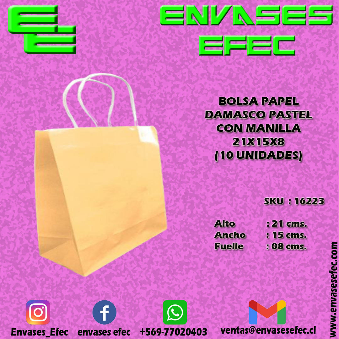 BOLSA PAPEL DAMASCO PASTEL CON MANILLA 21X15X8 (10 UNIDADES)