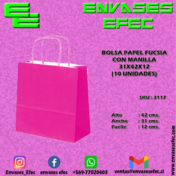BOLSA PAPEL FUCSIA CON MANILLA 31X42X12 (10 UNIDADES)