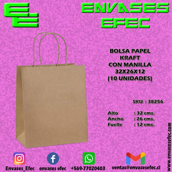 BOLSA PAPEL KRAFT CON MANILLA 32X26X12 (10 UNIDADES)