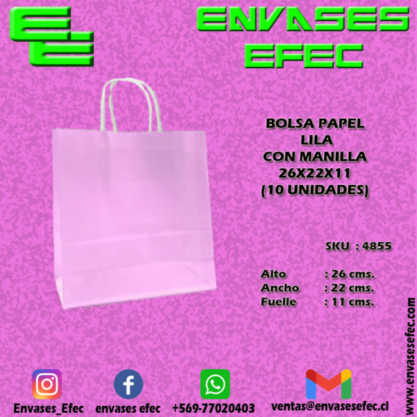 BOLSA PAPEL LILA CON MANILLA 26X22X11 (10 UNIDADES)