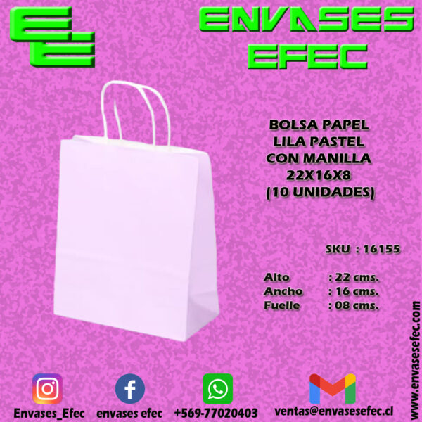 BOLSA PAPEL LILA PASTEL CON MANILLA 21X15X8 (10 UNIDADES)