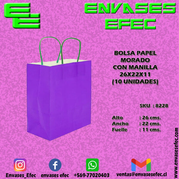 BOLSA PAPEL MORADA CON MANILLA 26X22X11 (10 UNIDADES)