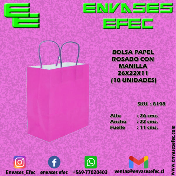 BOLSA PAPEL ROSADA CON MANILLA 26X22X11 (10 UNIDADES)