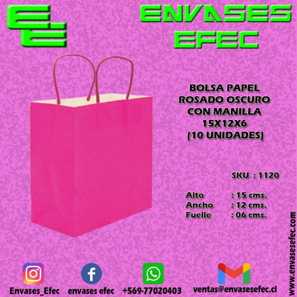 BOLSA PAPEL ROSADO OSCURO CON MANILLA 15X12X6 (10 UNIDADES)