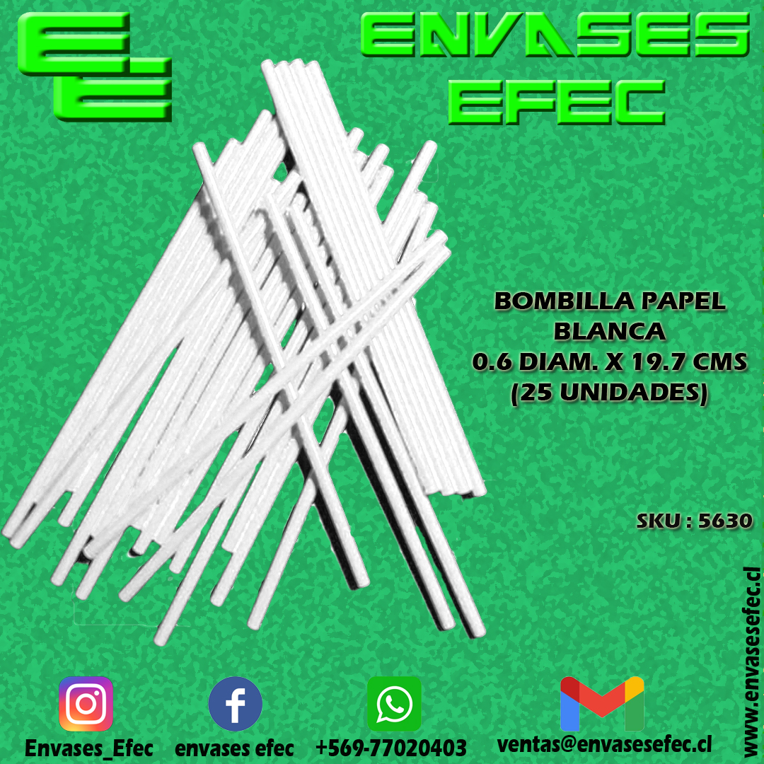 BOMBILLA PAPEL BLANCA 0.6 DIAM. X 19.7 CMS (25 UNIDADES)