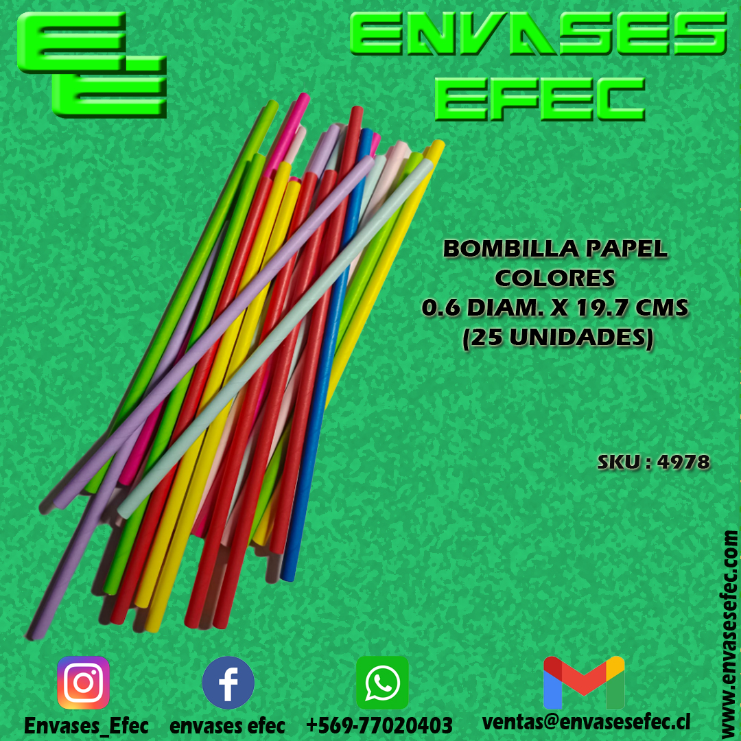 BOMBILLA PAPEL COLORES 0.6 DIAM. X 19.7 CMS (25 UNIDADES)