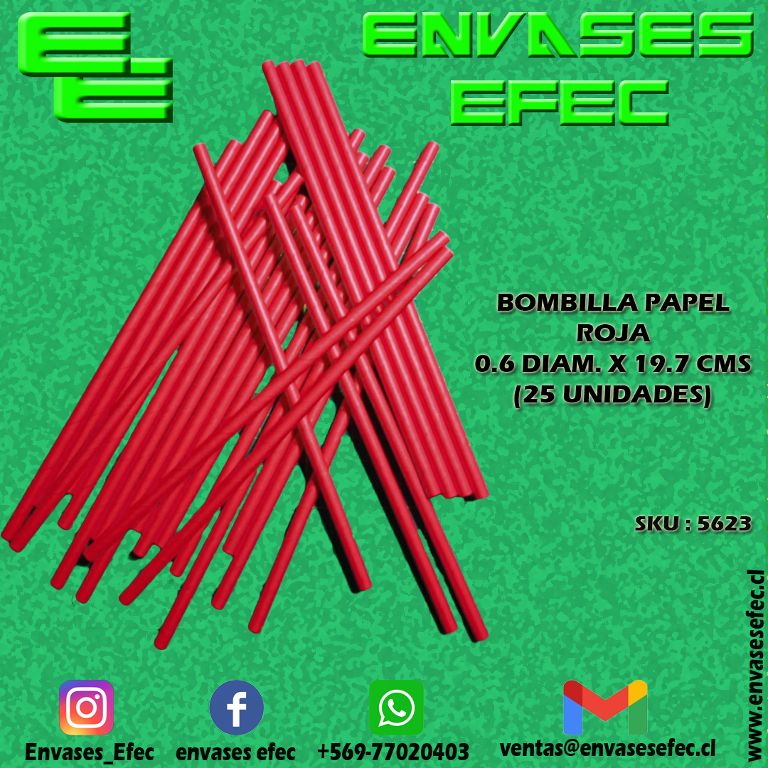 BOMBILLA PAPEL ROJA 0.6 DIAM. X 19.7 CMS (25 UNIDADES)