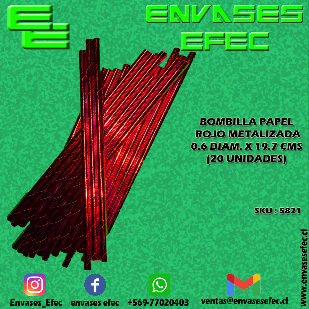 BOMBILLA PAPEL ROJO METALIZADA 0.6 DIAM. X 19.7 CMS (20 UNIDADES)