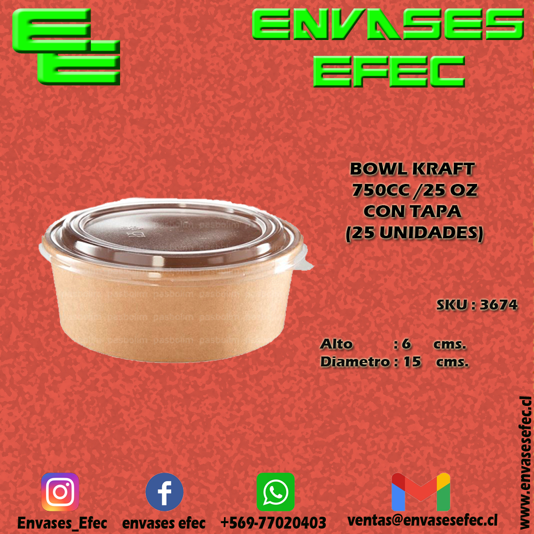BOWL KRAFT 750CC /25 OZ CON TAPA (25 UNIDADES)