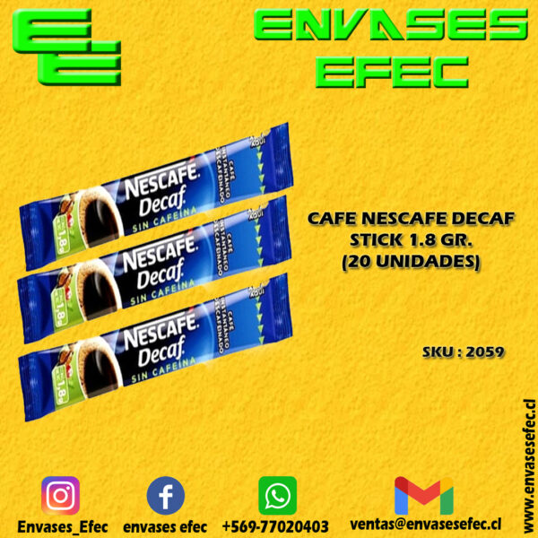 CAFE NESCAFE DECAF STICK 1.8 GR. (20 UNIDADES)