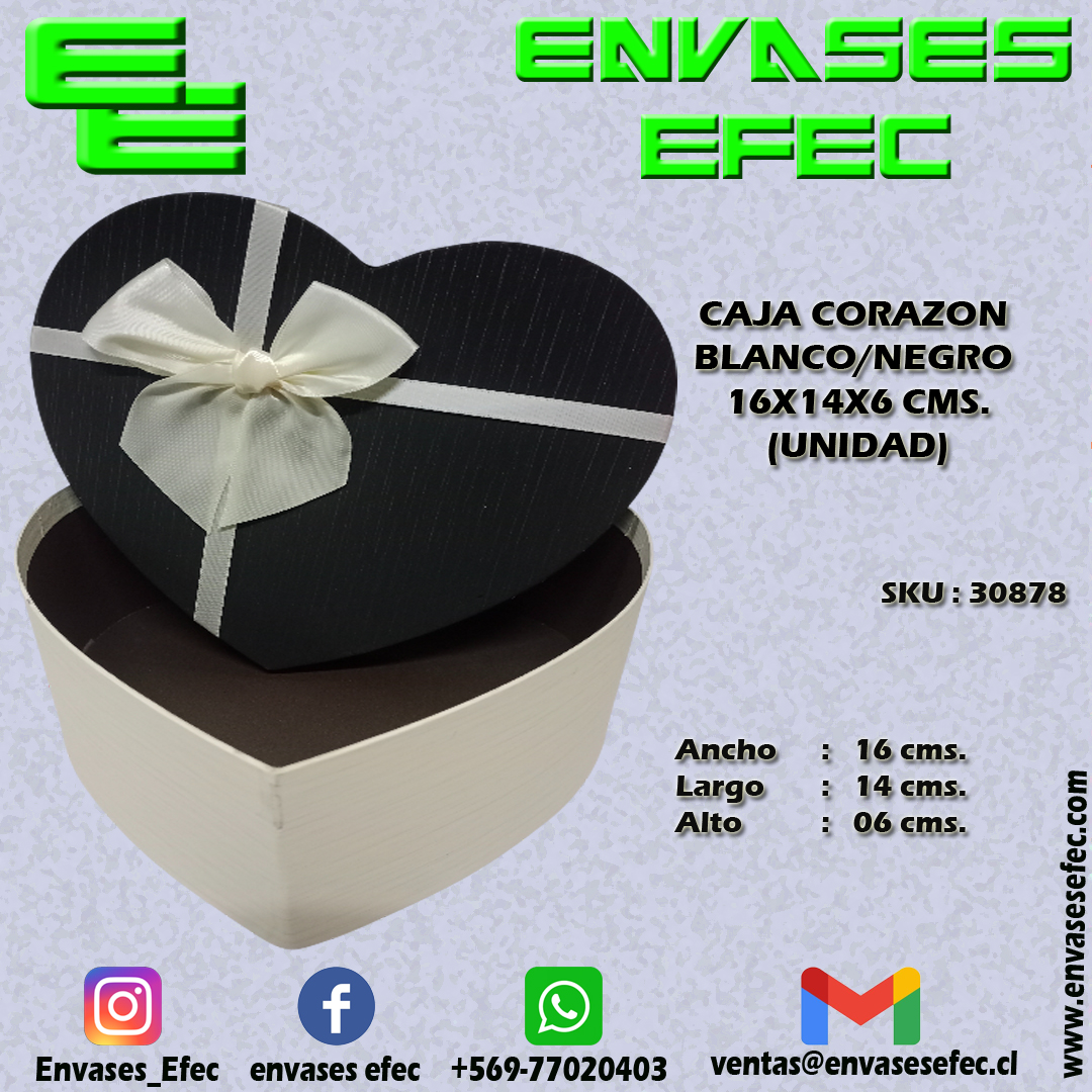 CAJA CORAZON BLANCO/NEGRO 16X14X6 CMS. (UNIDAD)