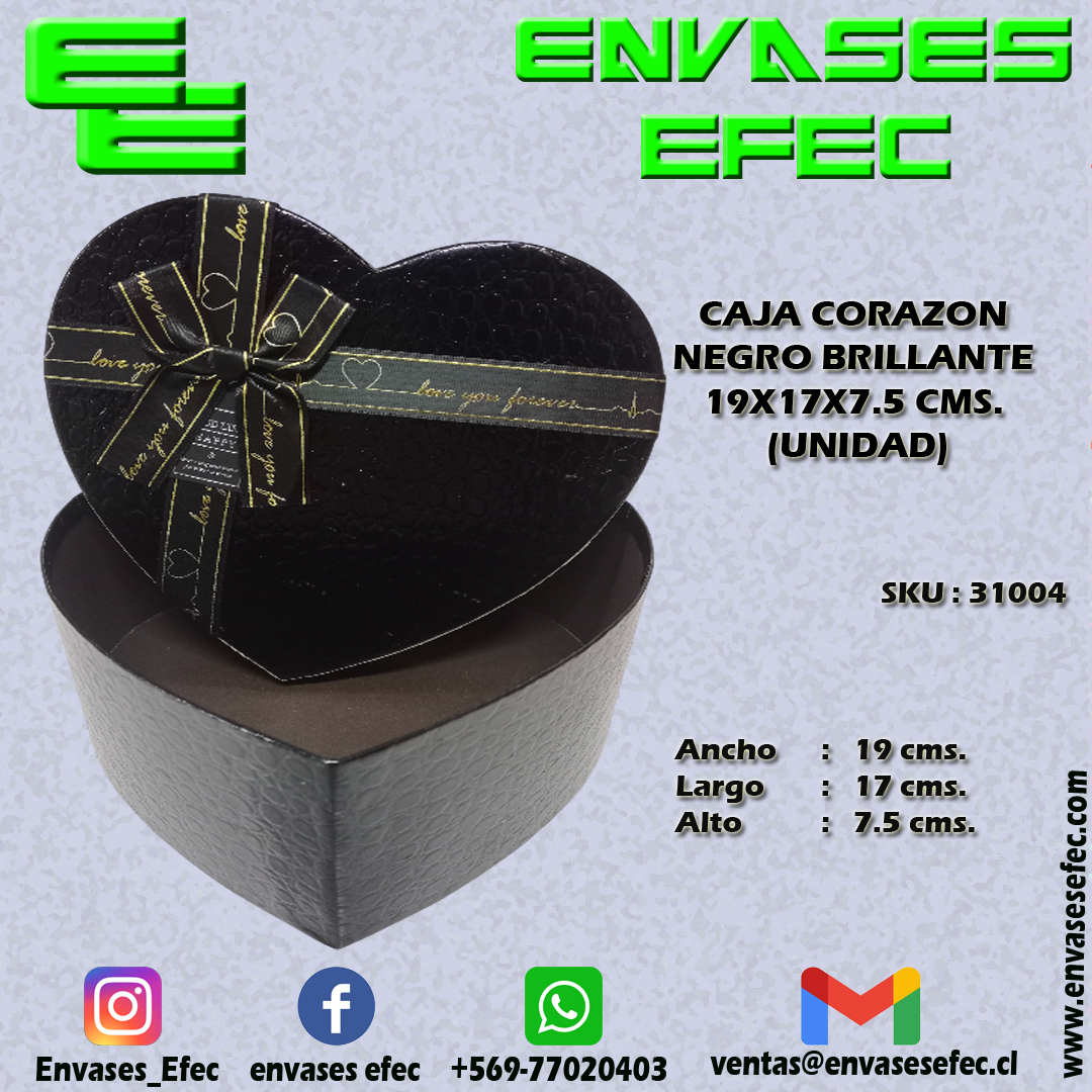 CAJA CORAZON NEGRO BRILLANTE 19X17X7.5 CMS. (UNIDAD)