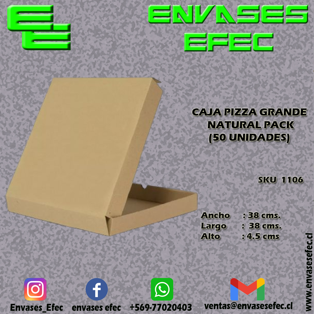 CAJA PIZZA GRANDE NATURAL PACK (38X38 CMS) (50 UNIDADES)