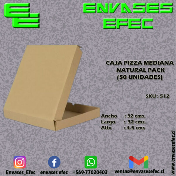 CAJA PIZZA MEDIANA NATURAL PACK (32X32 CMS.) (50 UNIDADES)