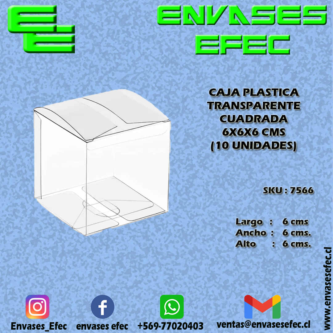CAJA PLASTICA TRANSPARENTE CUADRADA 6X6X6 CMS (10 UNIDADES)