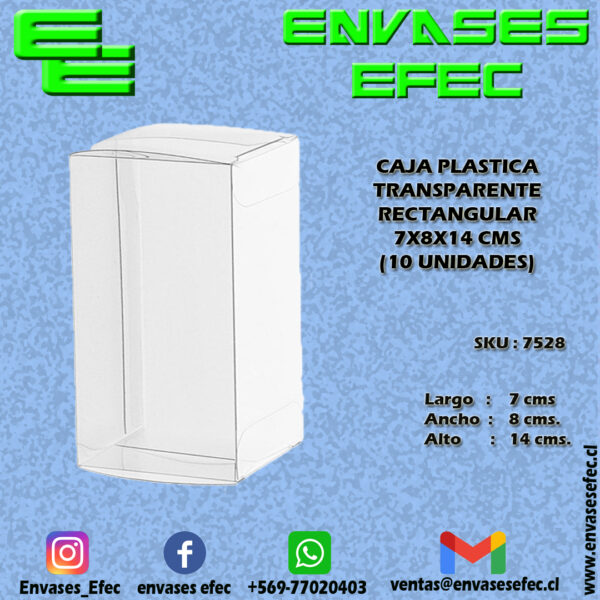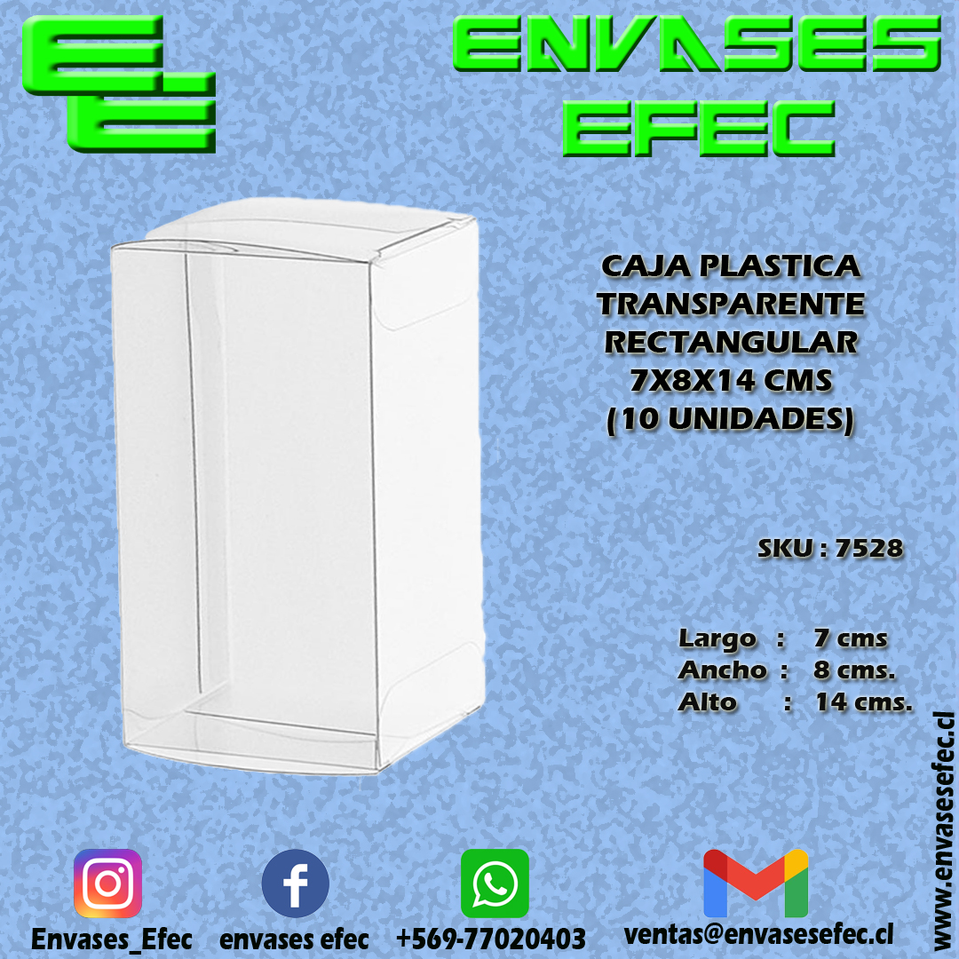 CAJA PLASTICA TRANSPARENTE RECTANGULAR 7X8X14 CMS (10 UNIDADES)