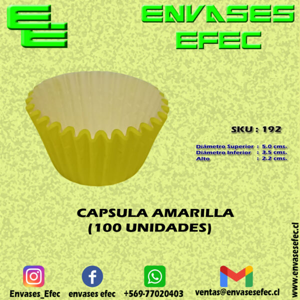CAPSULA AMARILLA DIAM. BASE, 3.5 CMS. DIAM. SUP. 5.0 CMS., ALTO 2.2 CMS. (100 UNIDADES)