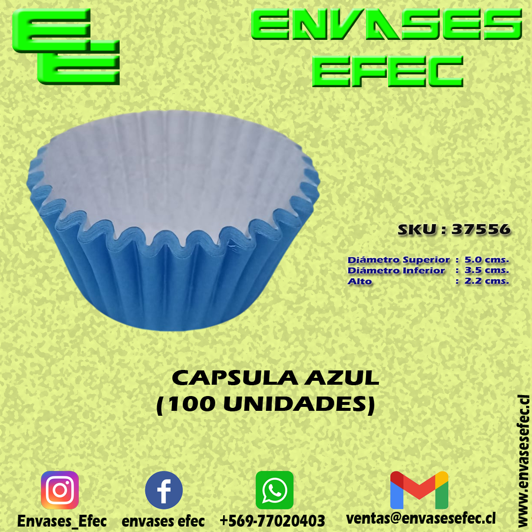 CAPSULA AZUL DIAM. BASE, 3.5 SUP. 5.0, ALTO 2.2, CMS. (100 UNIDADES)