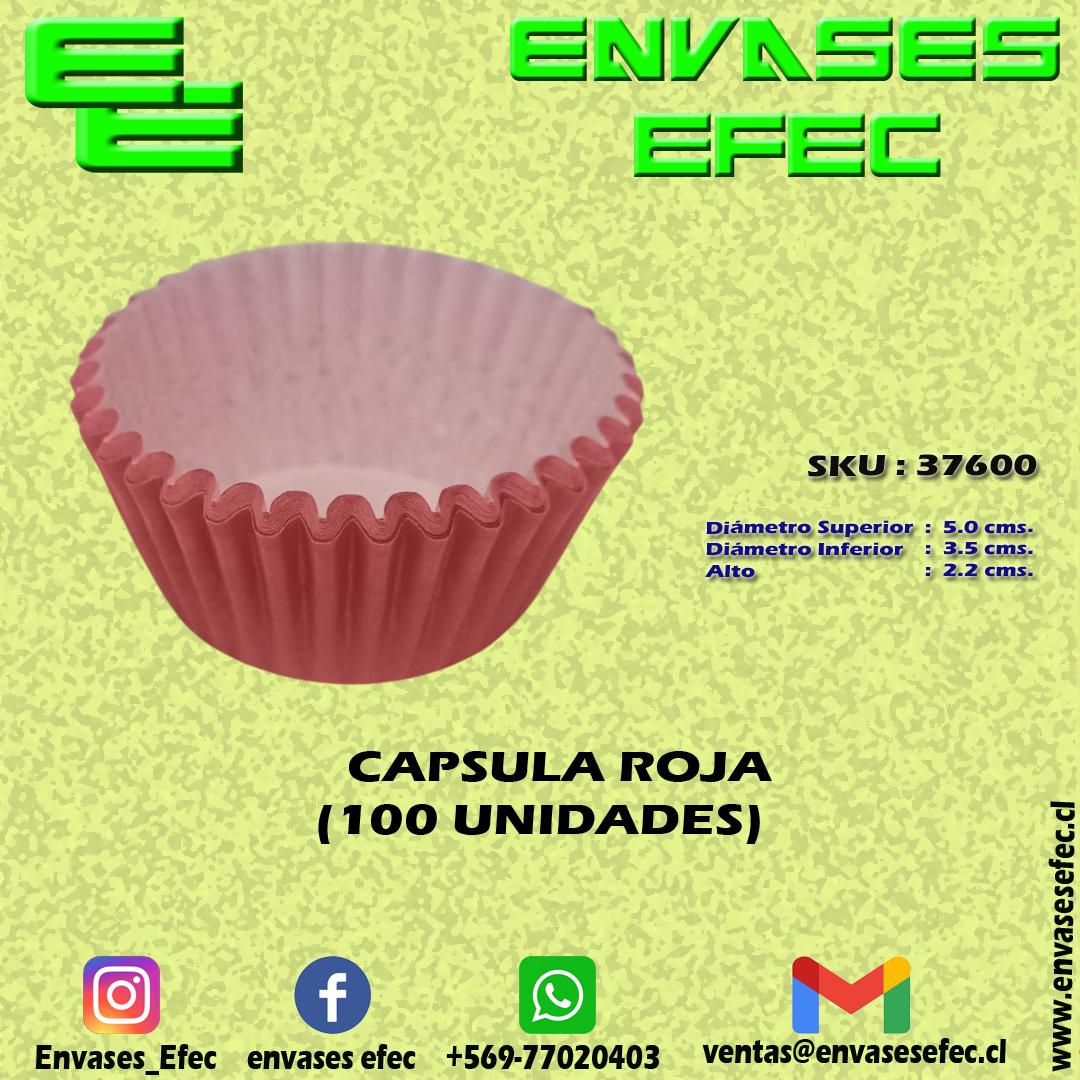 CAPSULA ROJA DIAM. BASE, 3.5 SUP. 5.0, ALTO 2.2, CMS. (100 UNIDADES)