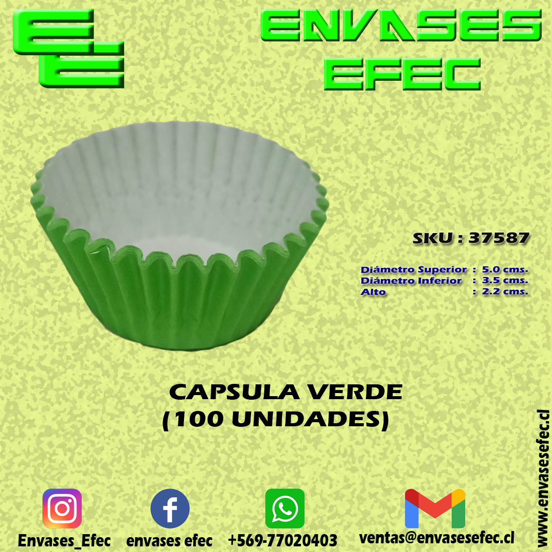 CAPSULA VERDE DIAM. BASE, 3.5 SUP. 5.0, ALTO 2.2, CMS. (100 UNIDADES)