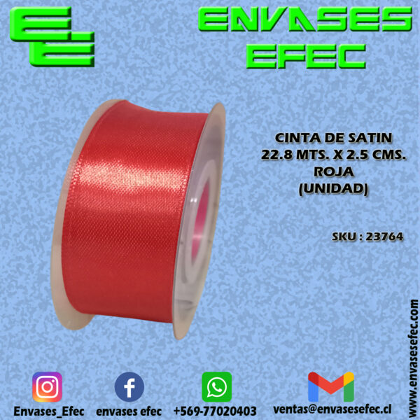 CINTA DE SATIN 22.8 X 2.5 CMS. ROJA (UNIDAD)