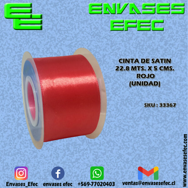 CINTA DE SATIN 22.8 X 5 CMS. ROJO (UNIDAD)