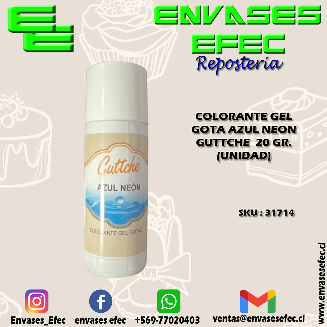 COLORANTE GEL GOTA AZUL NEON GUTTCHE 20 GR. (UNIDAD)