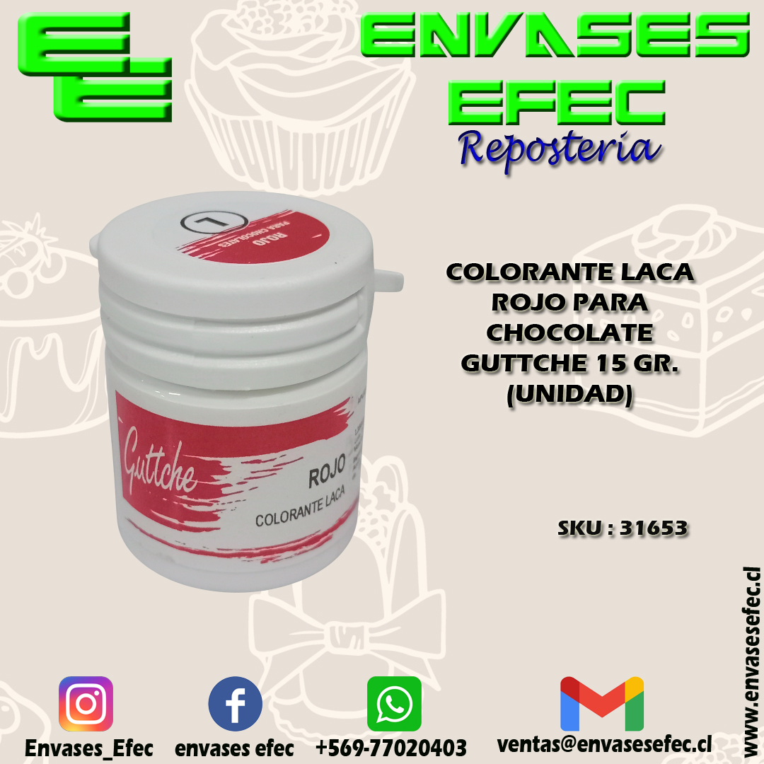 COLORANTE LACA ROJO PARA CHOCOLATE GUTTCHE 15 GR. (UNIDAD)
